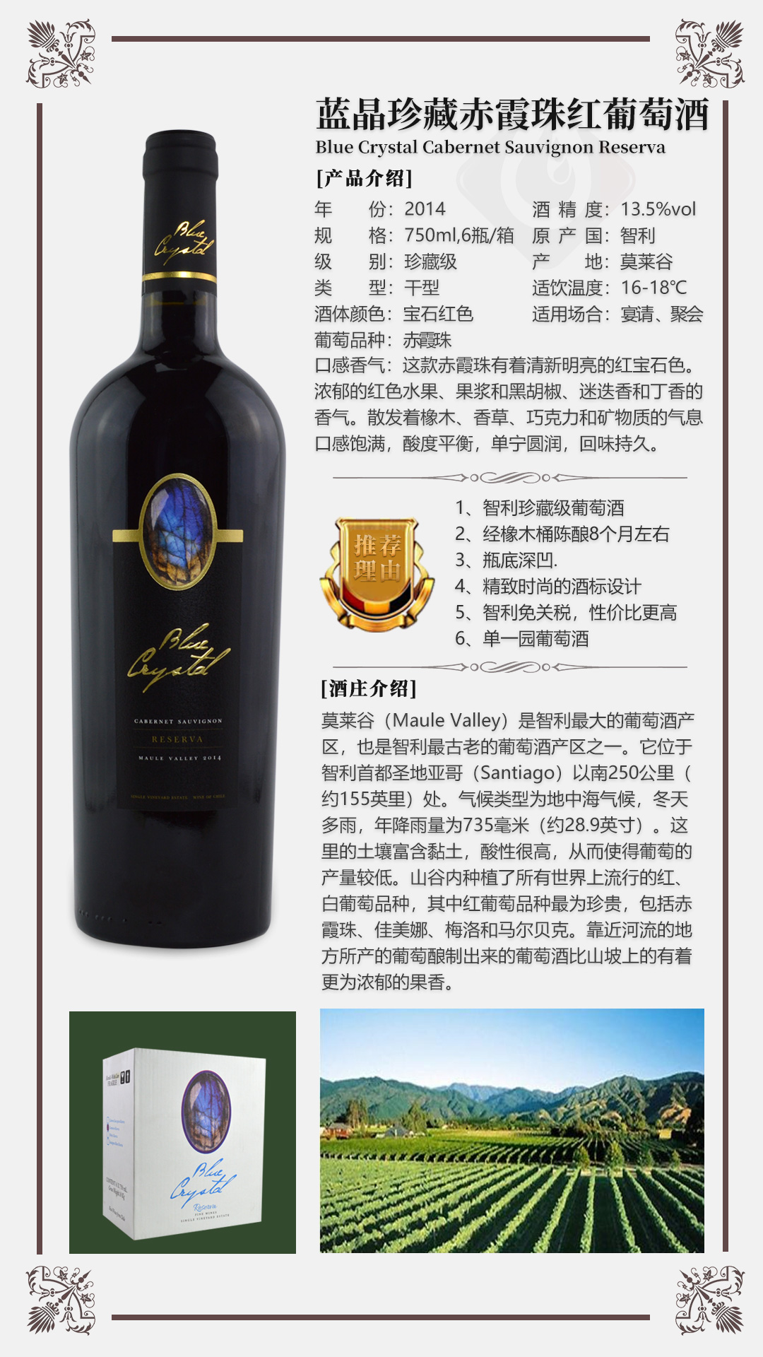 蓝晶珍藏赤霞珠红葡萄酒
